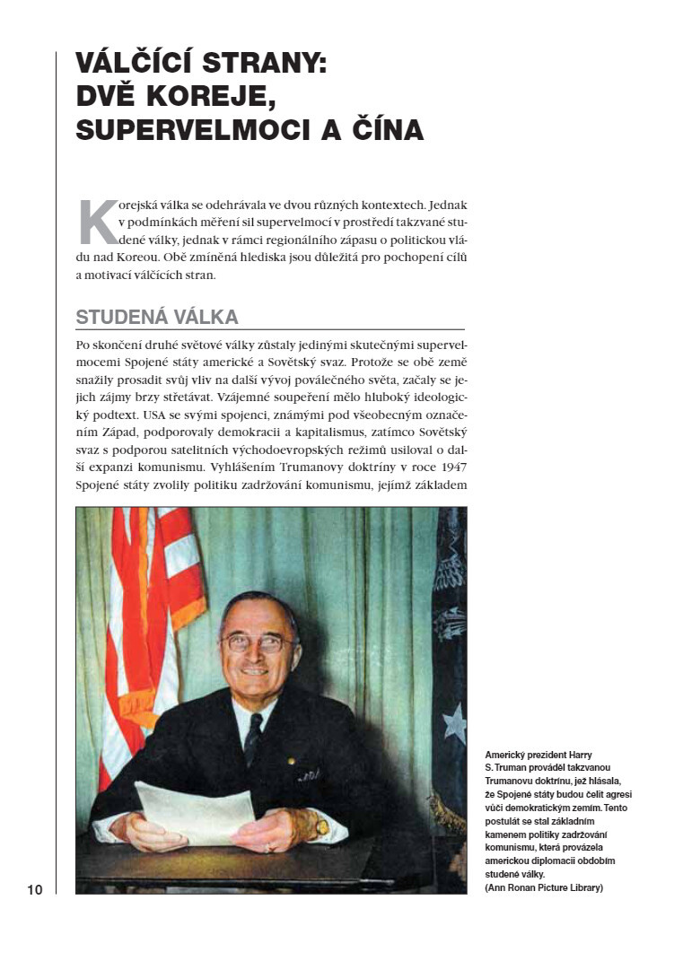 Korejská válka byla významným přelomovým bodem ve studené válce. Tato kniha vysvětluje, jak obrovský vliv měl konflikt, odehrávající se na malém poloostrově ve východní Asii, na celý systém mezinárodních vztahů a na rovnováhu sil mezi dvěma světovými supervelmocemi - Spojenými státy a Sovětským svazem. Západní svět v průběhu konfliktu demonstroval své odhodlání čelit komunistické agresi. Byl to jediný případ za celé období studené války, kdy se ozbrojené síly Čínské lidové republiky, Sovětského svazu a Spojených státu střetly v přímém boji.