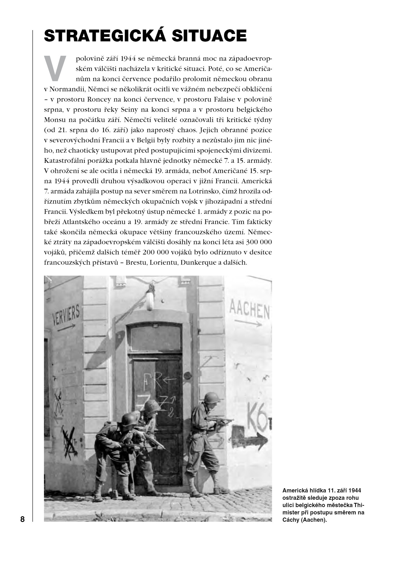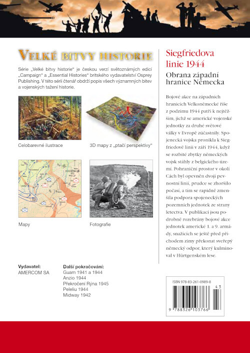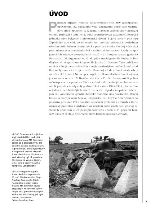 Bojové akce na západních hranicích Velkoněmecké říše z podzimu 1944 patří k nejtěžším, jichž se americké vojenské jednotky za druhé světové války v Evropě zúčastnily. Když Spojenci pronikli v září 1944 k Siegfriedově linii, kam se stáhly zbytky německých vojsk z belgického území, čekalo je deštivé počasí a krutý boj, v němž nemohli počítat s obvyklou leteckou podporou. Pohraniční prostor v okolí Cách byl opevněn dvojí pevnostní linií. Tato kniha v souvislostech rozebírá bojové akce spojeneckých jednotek, snažících se ještě před příchodem zimy překonat svěřepý německý odpor, který kulminoval v Hürtgenském lese.