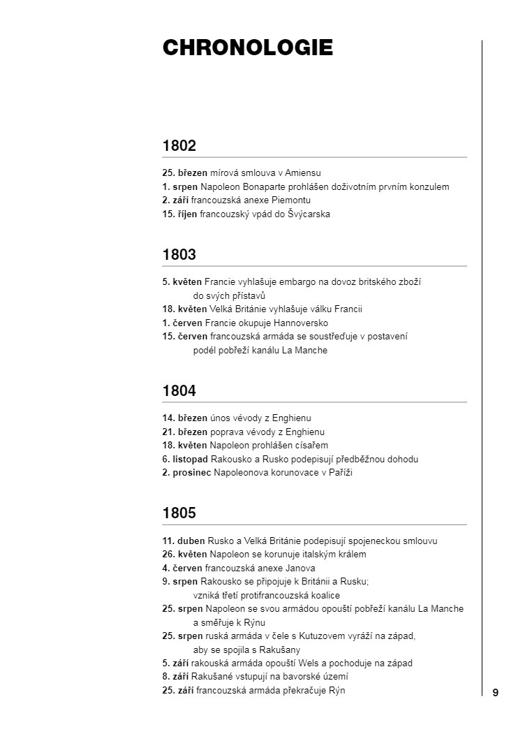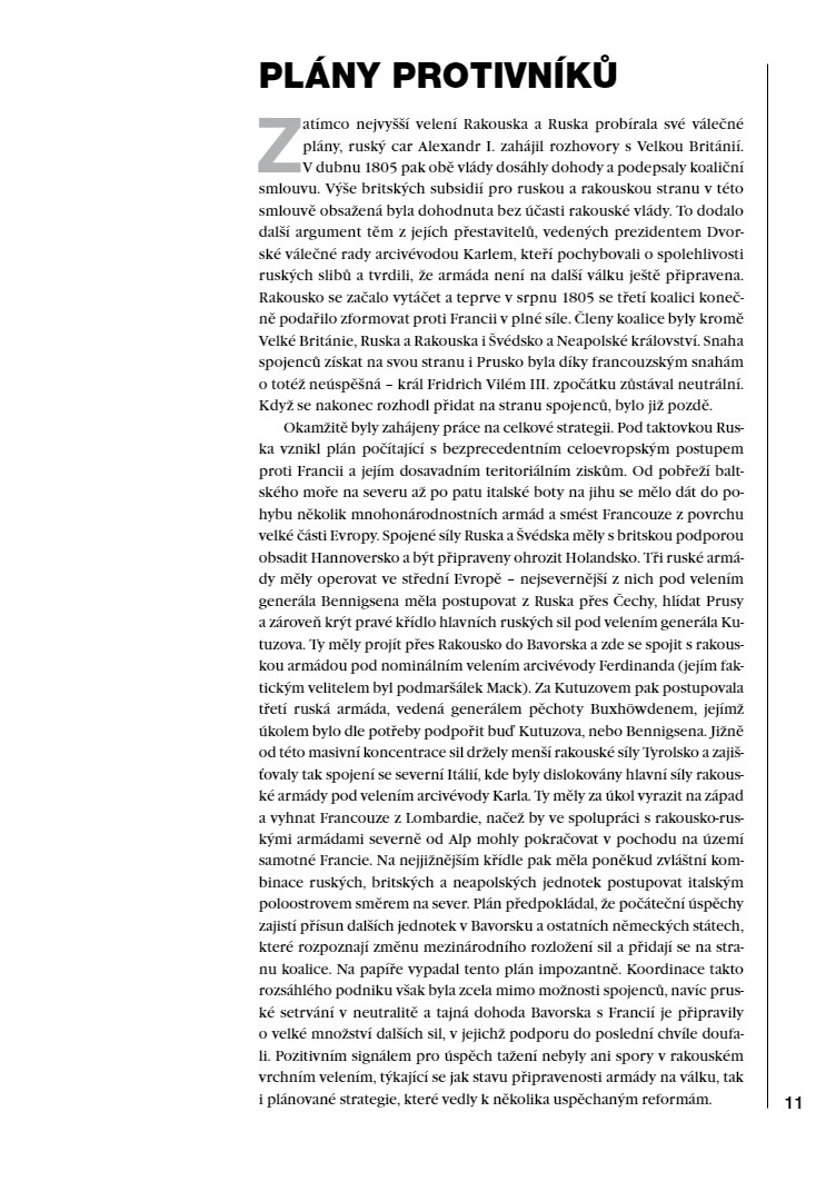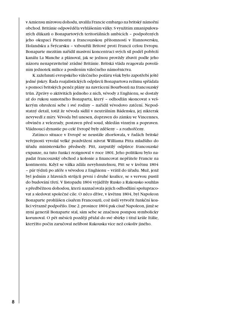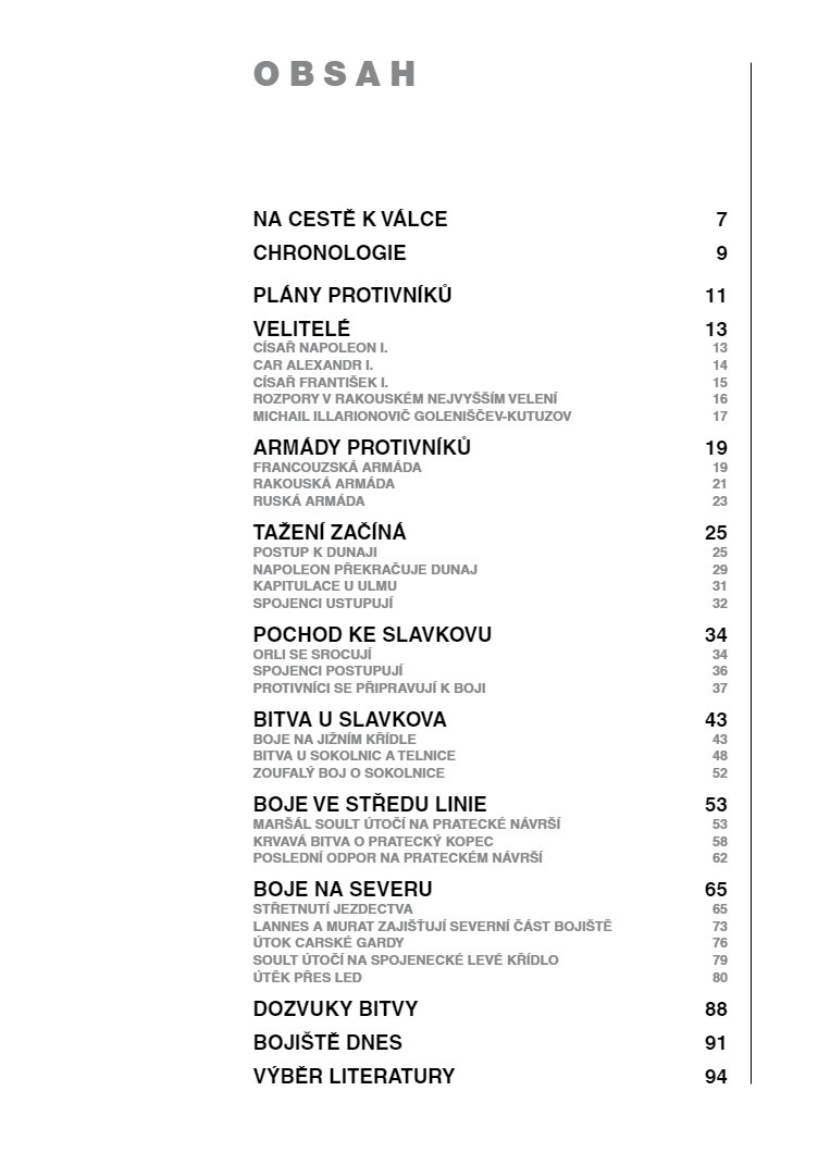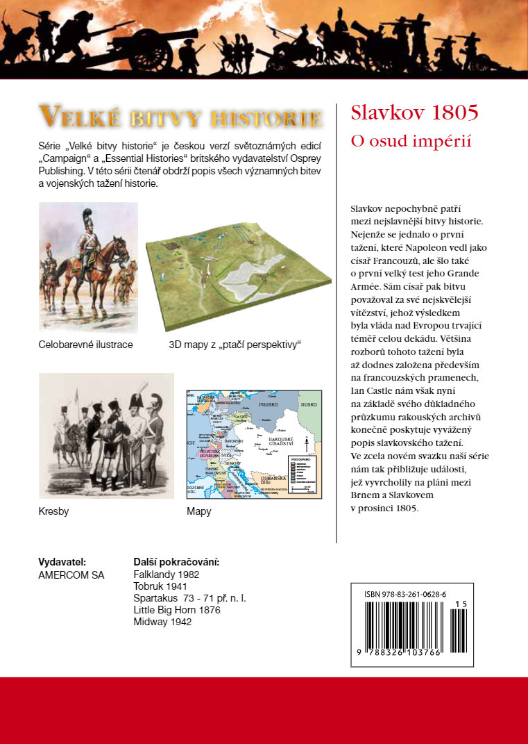 Slavkov nepochybně patří mezi nejslavnější bitvy historie. Nejenže se jednalo o první tažení, které Napoleon vedl jako císař Francouzů, ale šlo také o první velký test jeho Grande Armée. Sám císař pak bitvu považoval za své nejskvělejší vítězství, jehož výsledkem byla vláda nad Evropou trvající téměř celou dekádu. Většina rozborů tohoto tažení byla až dodnes založena především na francouzských pramenech, Ian Castle nám však nyní na základě svého důkladného průzkumu rakouských archivů konečně poskytuje vyvážený popis slavkovského tažení. Ve zcela novém svazku naší série nám tak přibližuje události, jež vyvrcholily na pláni mezi Brnem a Slavkovem v prosinci 1805.